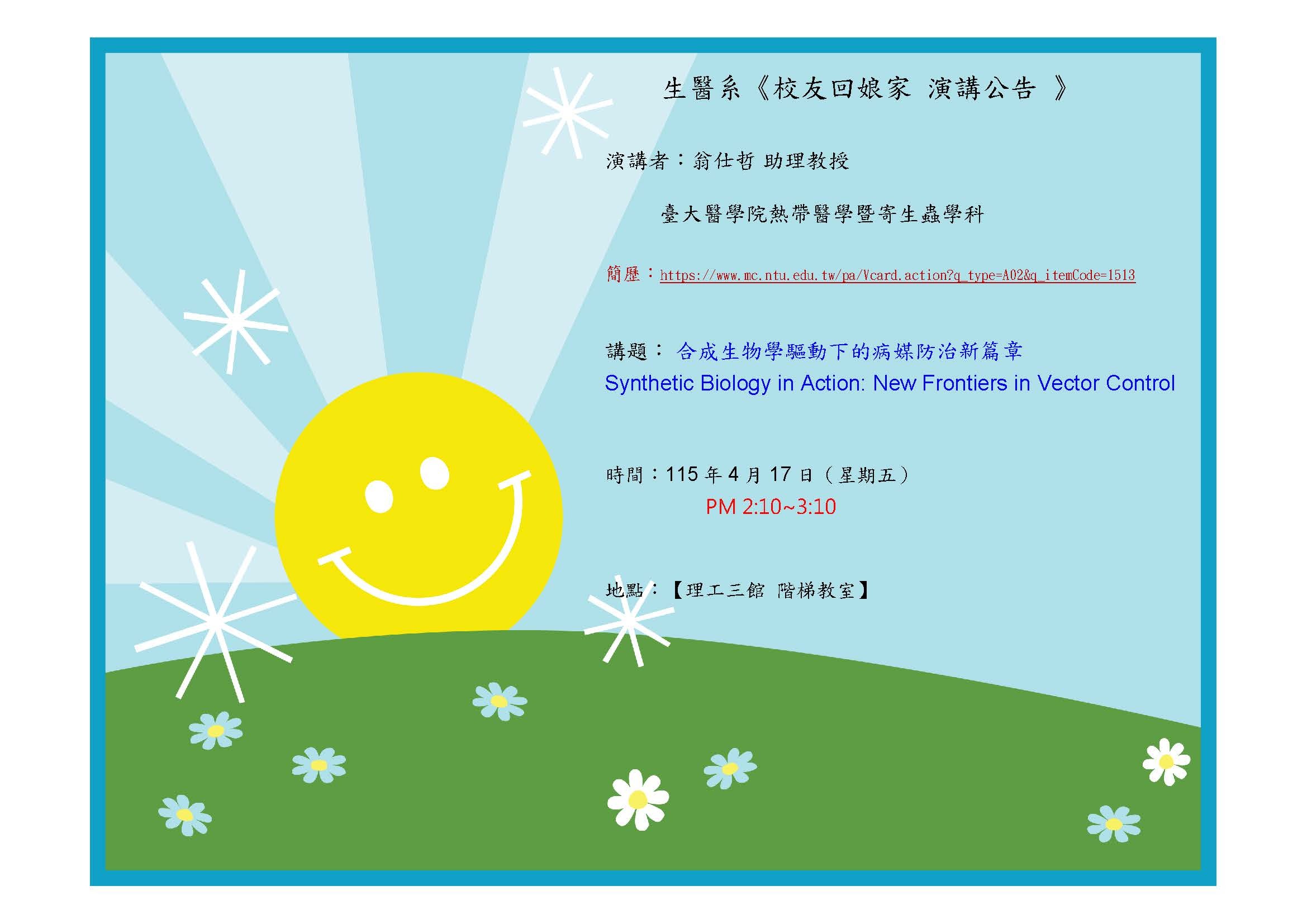 115.04.17專題演講,歡迎踴躍參加!!!【演講者:翁仕哲 助理教授】